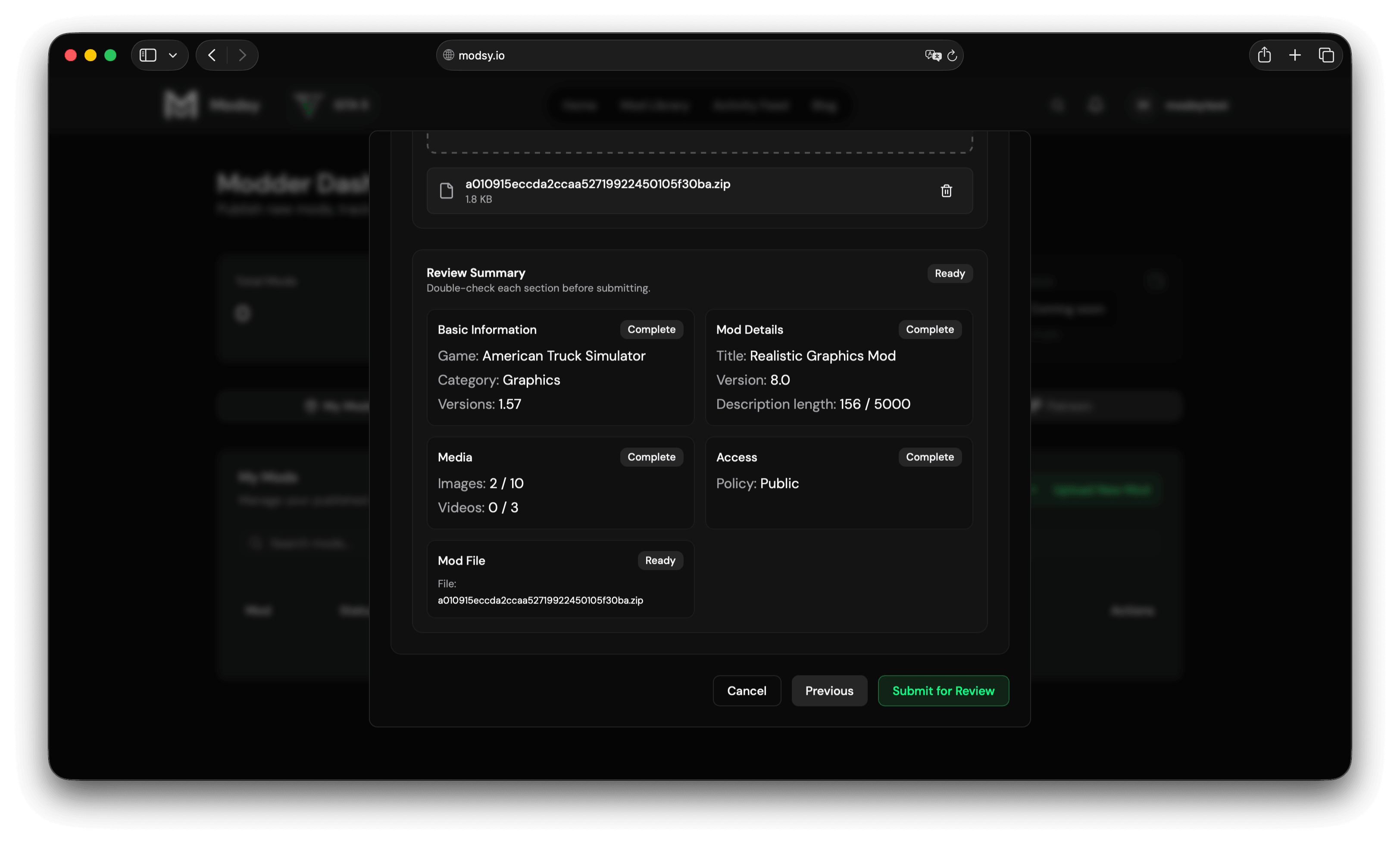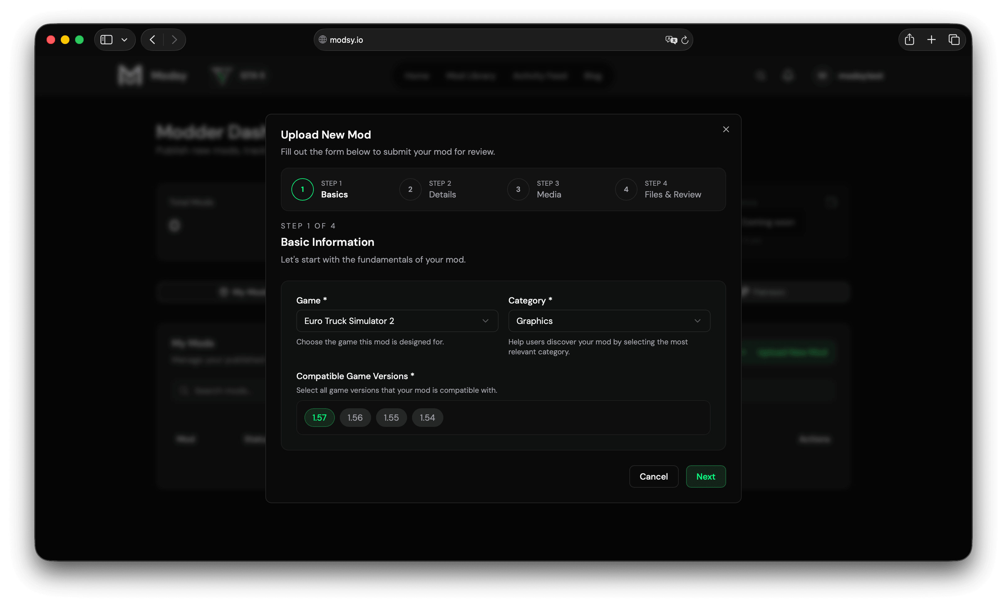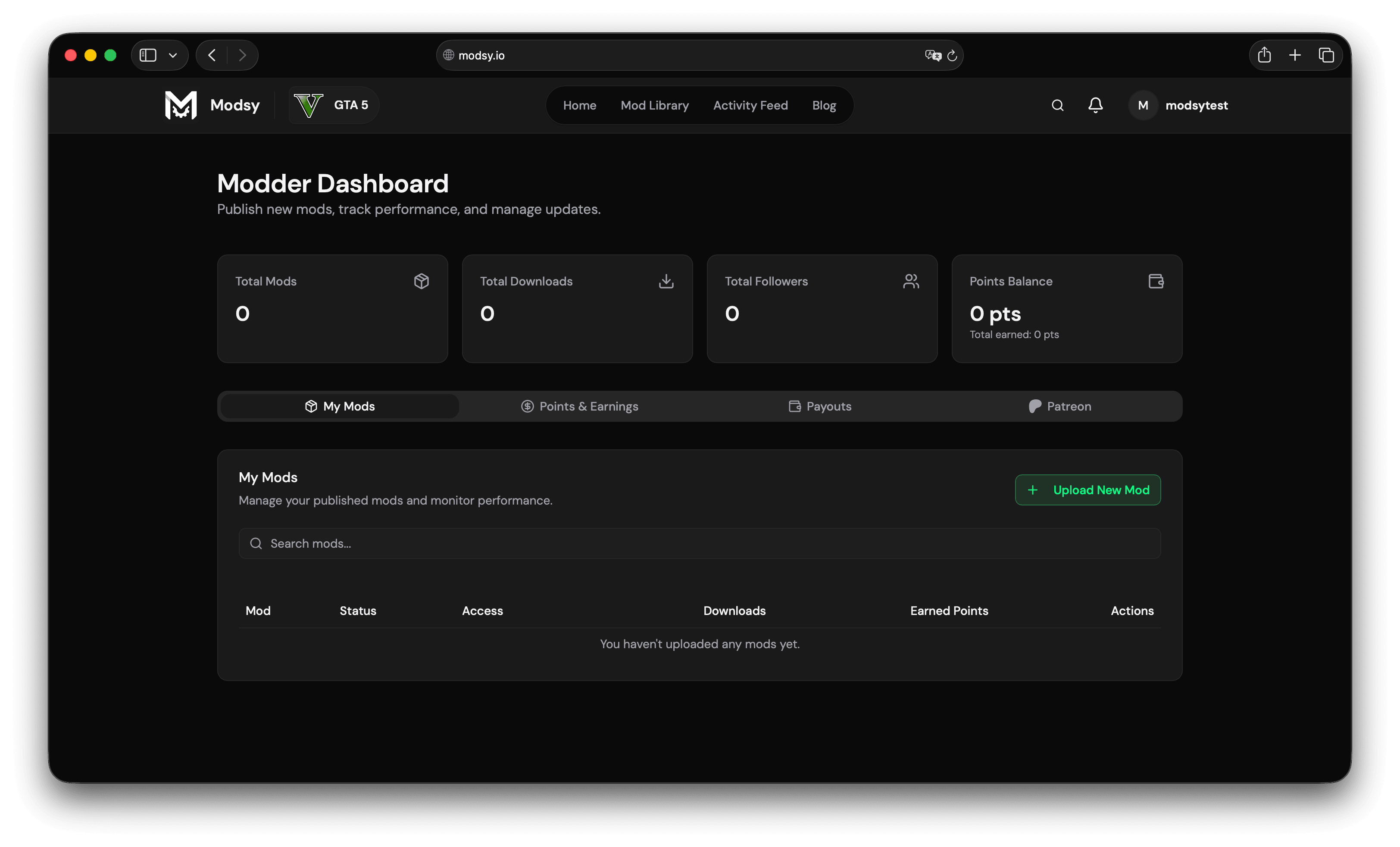 Once approved, you will be redirected to your Modder Dashboard.